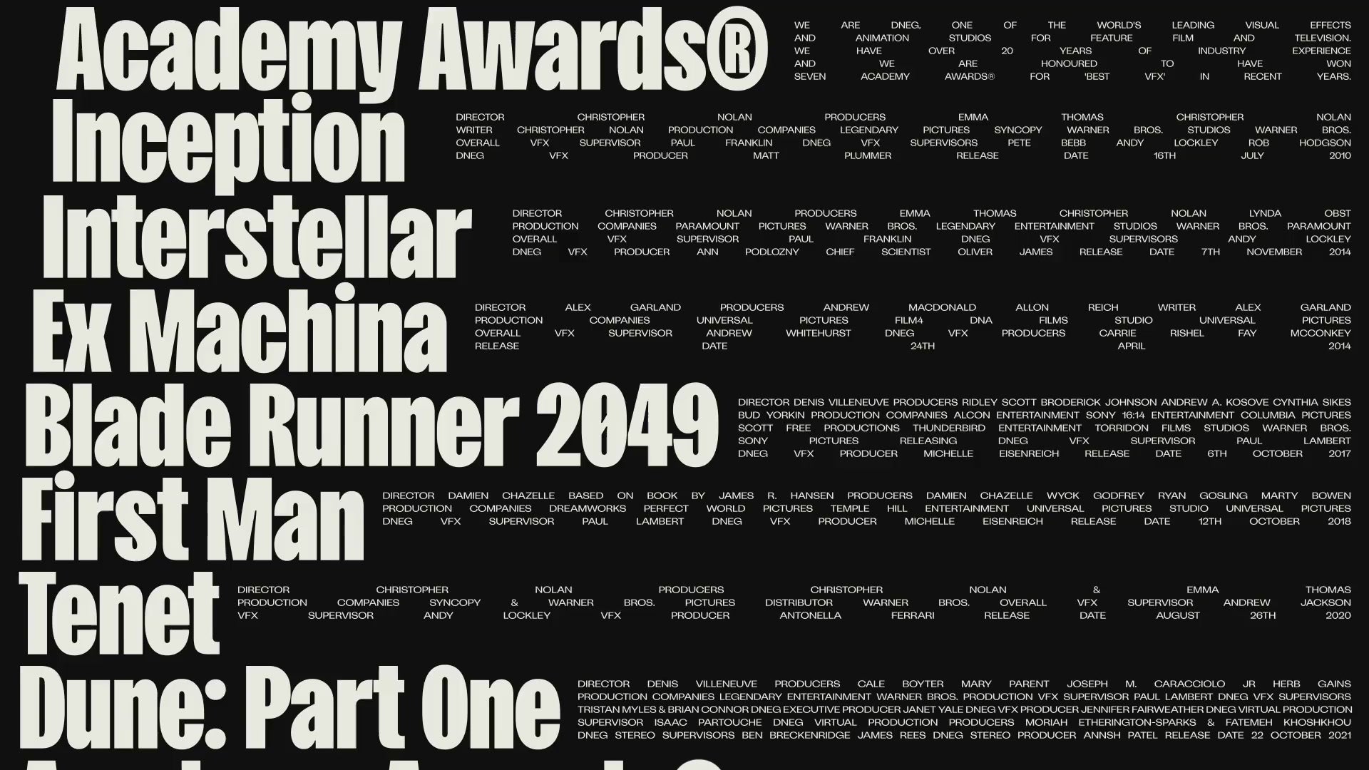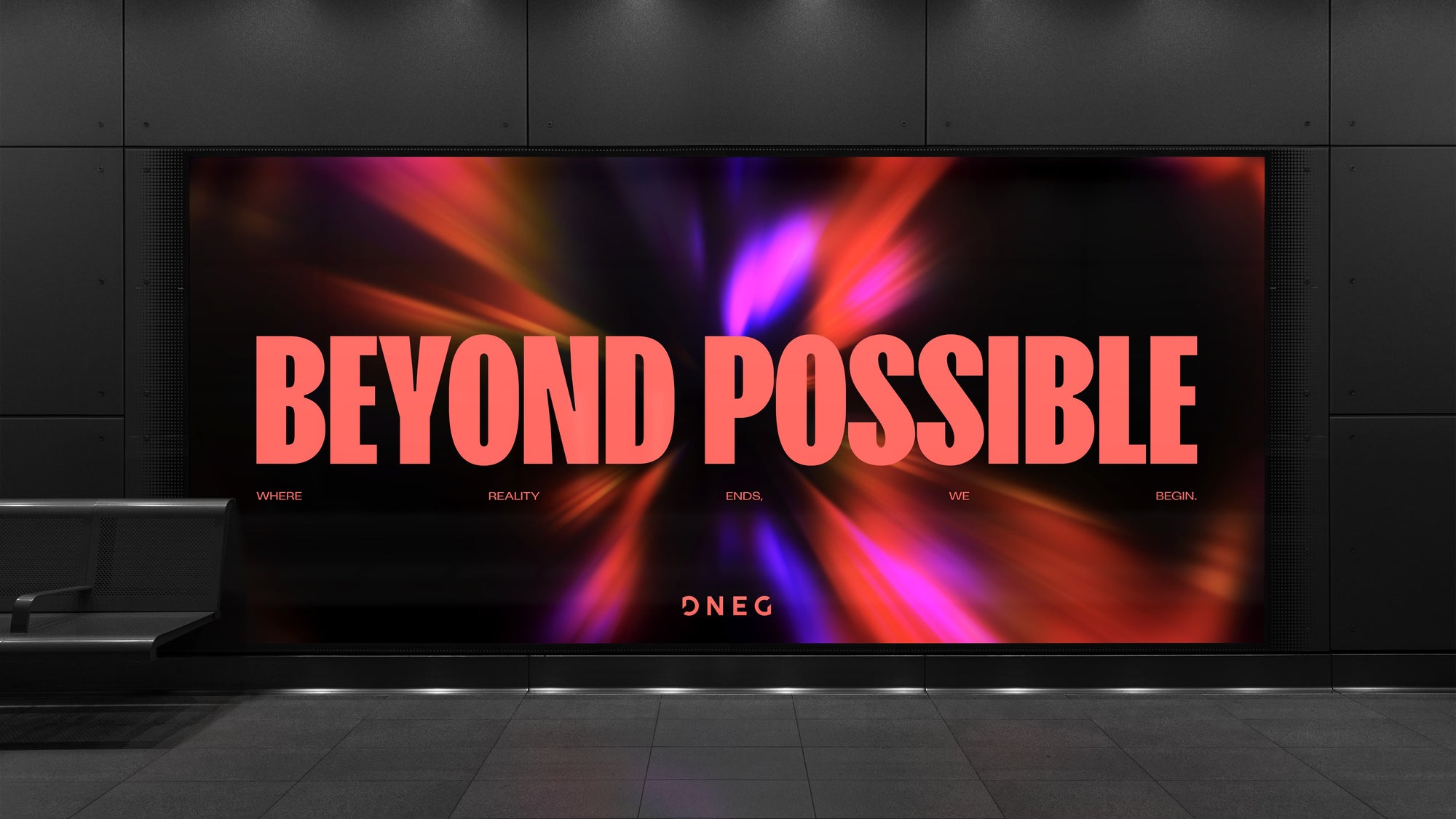 The result is a distinctive headline typeface, DNEG Script, designed to convey energy and precision while remaining highly adaptable across a variety of media. Used alongside a refined colour palette and dynamic visual system, it helps express DNEG’s position as an industry leader, unafraid to push boundaries in film, television, and immersive experiences.